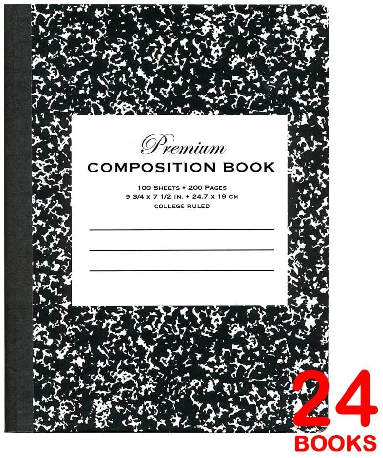 Premium Composition Book College Ruled 100 Ct. 9 3/4 x 7 1/2 in. | Black Marble Hard Cover