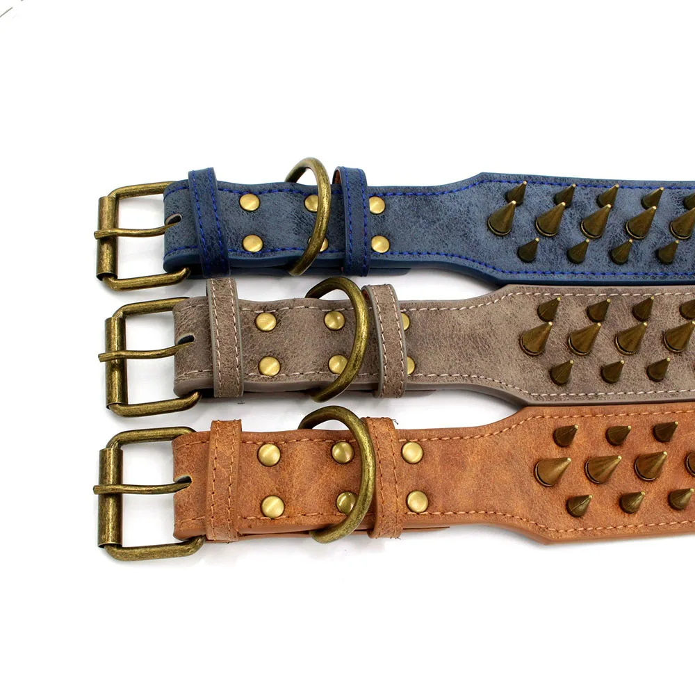 🐕🛡️ Spiked Large Dog Collar – PU Leather Collar for Medium to Large Breeds (L–3XL) | Pitbull, Mastiff, Boxer