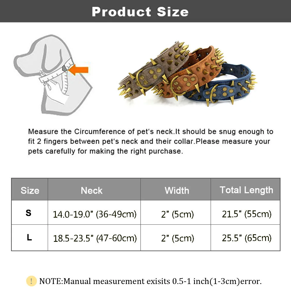 Specially designed for extra large dogs, this collar features a wide, comfortable fit with strong spiked leather detailing to help prevent bites and protect your dog’s neck during training, walks, or outdoor adventures.