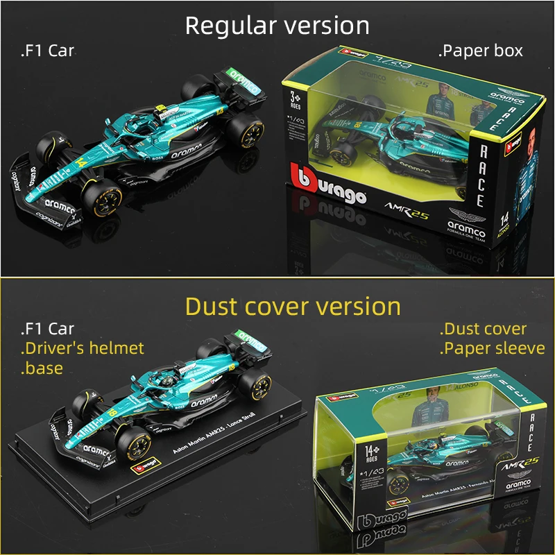 Perfect for collectors, F1 fans, and Aston Martin enthusiasts, this model delivers museum‑quality craftsmanship with an alloy body, rubber tires, and ABS components for a realistic finish. Choose between the Regular Version or the Dust Cover Collector Edition for the ultimate showcase experience 🏁💚.