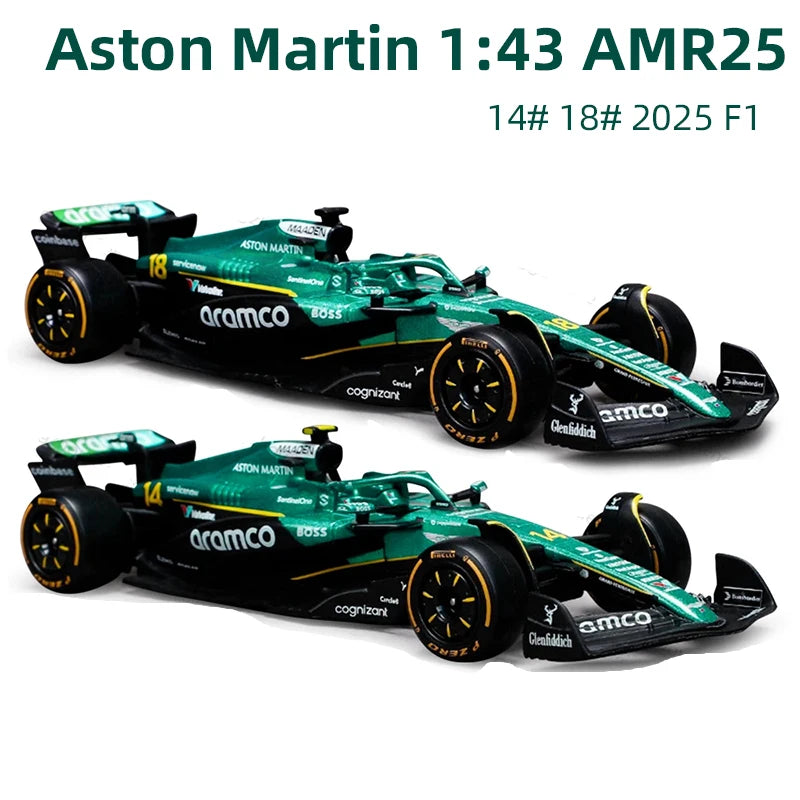 1:43 Aston Martin AMR25 F1 Die‑Cast Model Car – 2025 Alonso #14 & Stroll #18 Miniature Racing Collectible