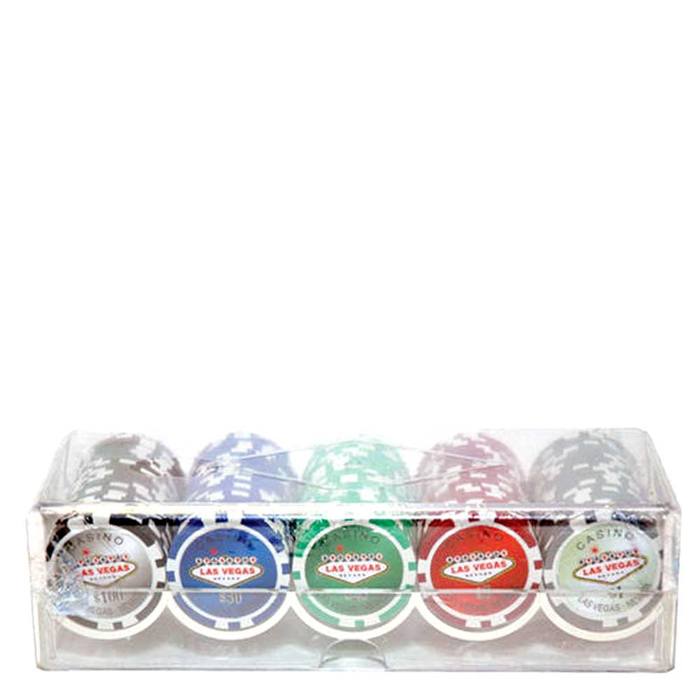 100‑Piece 11.5g Poker Chips Set with Dice, Suited & Las Vegas Designs in Clear Plastic Case