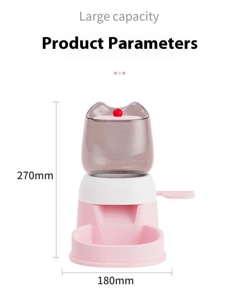 Keep your pet hydrated and fed with this dual-function water fountain and automatic feeder. The 2L capacity reduces refilling frequency, while the automatic dispenser ensures consistent meal portions throughout the day. Ideal for cats and dogs of all sizes, this large bowl combines convenience with pet wellness in one sleek design.