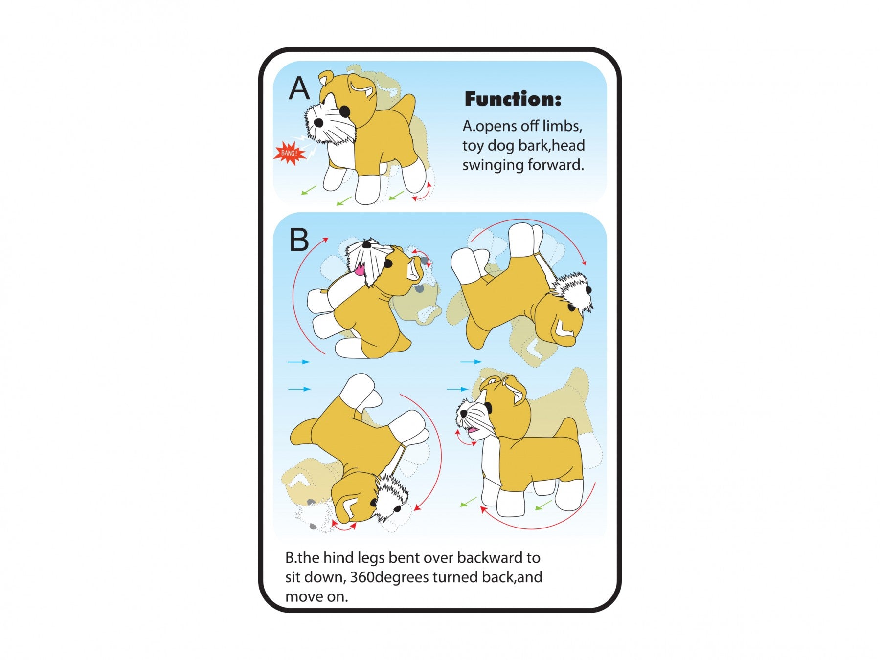 An adorable little puppy pal that can do somersaults in mid-air, walk, sit, and bark like a natural dog. |