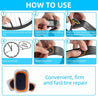 SIMPLE TO USE Scuff punctured area with metal scuffer (provided) squeeze glue around punctured area and wait 5-minutes. Peel off sliver backing on patch and place over glued area. Press firmly to insure vulcanization. Remove clear top plastic from patch and it's ready for use