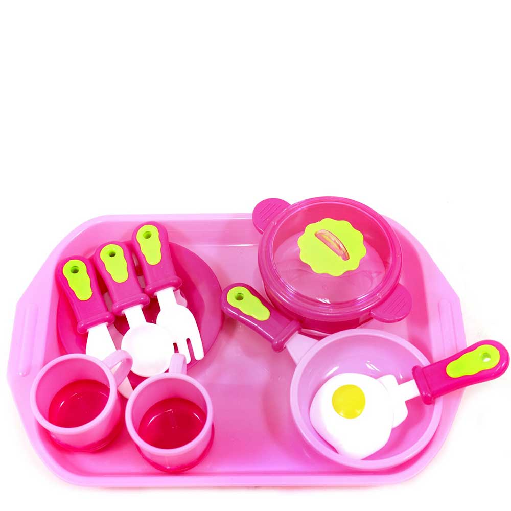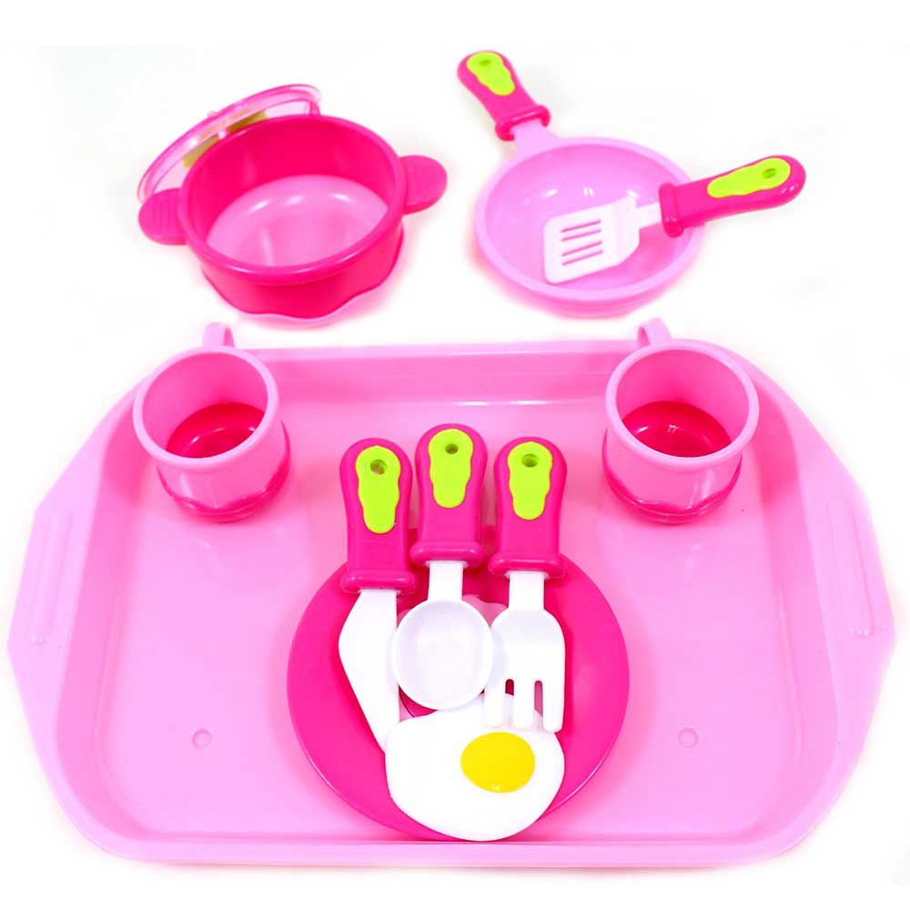 | Features | Full Kitchen Set Serving Tray 4 Utensils, 4.5" Frying Pan measures 6.5" |