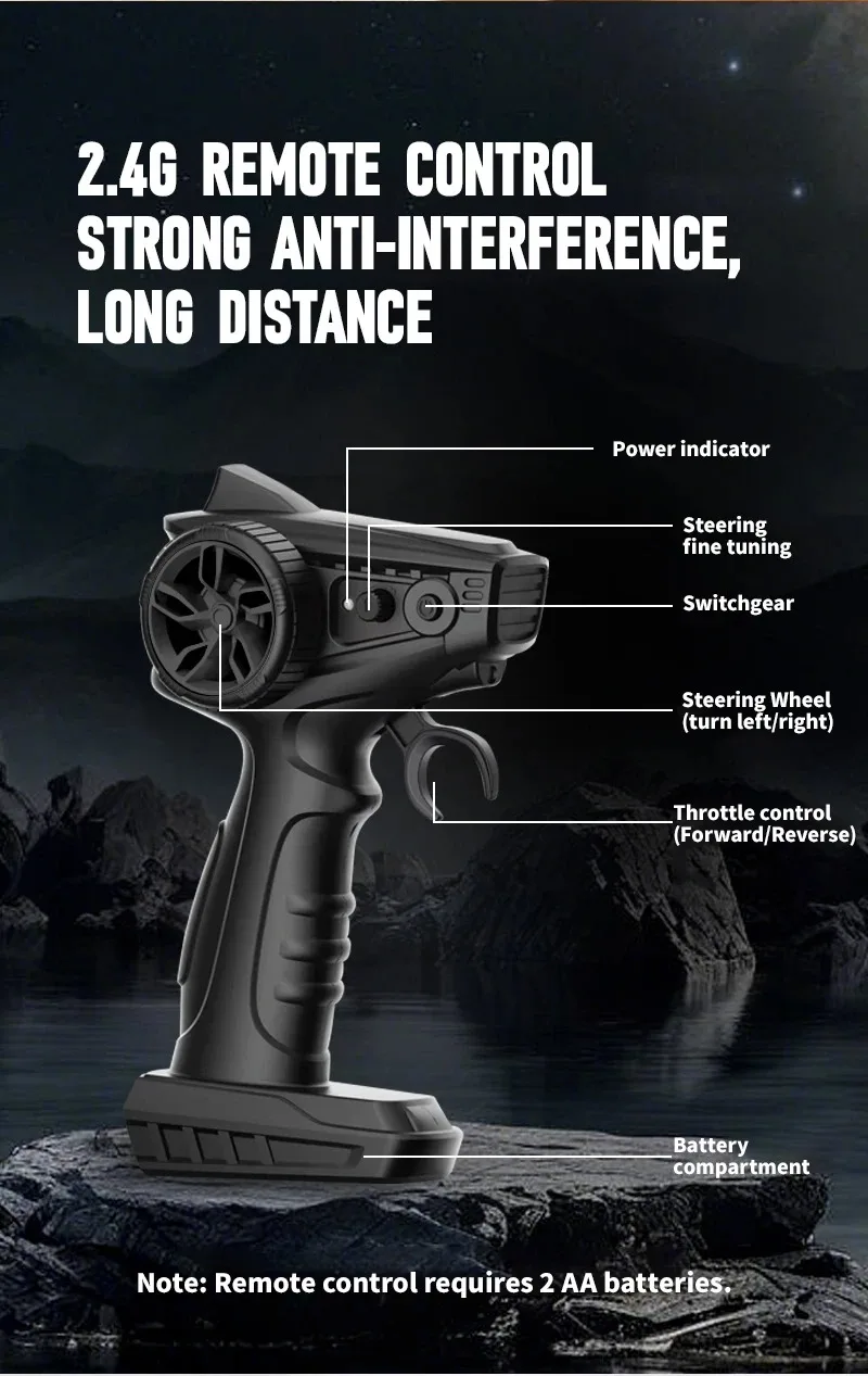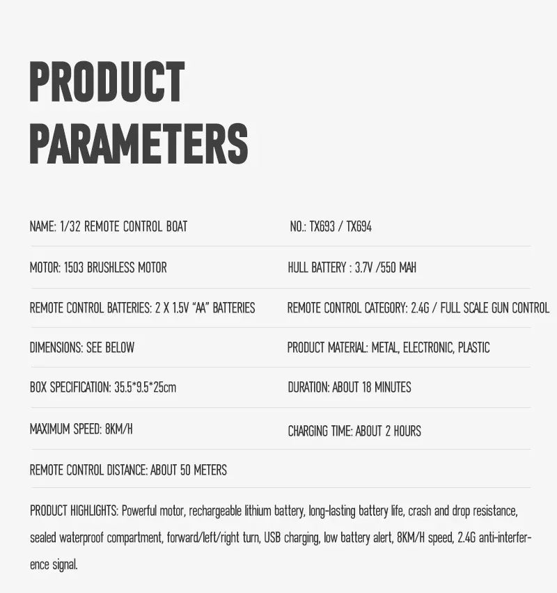 The Brushless Jet 2.4G RC Boat TX693 offers precision and high performance with an advanced brushless motor for speed, torque, and durability, and minimal maintenance. Its 2.4GHz remote provides interference-free control and responsive handling. Perfect for enthusiasts, it delivers a sophisticated, reliable, and competitive RC boating experience. Great as a gift, it combines expert technology with easy operation.