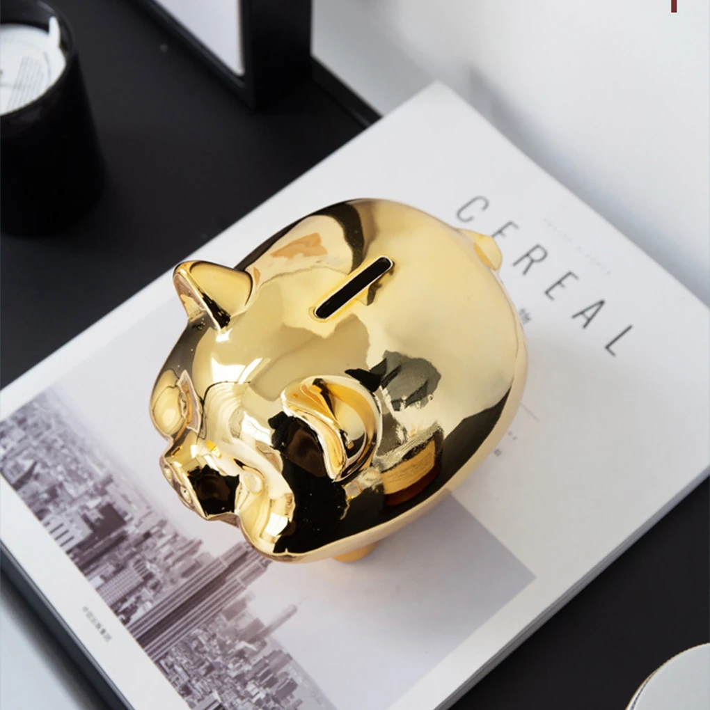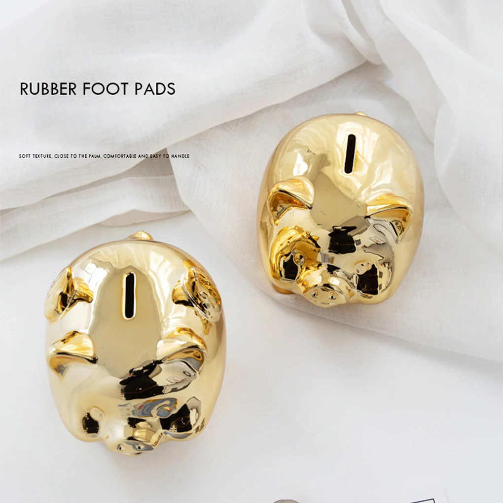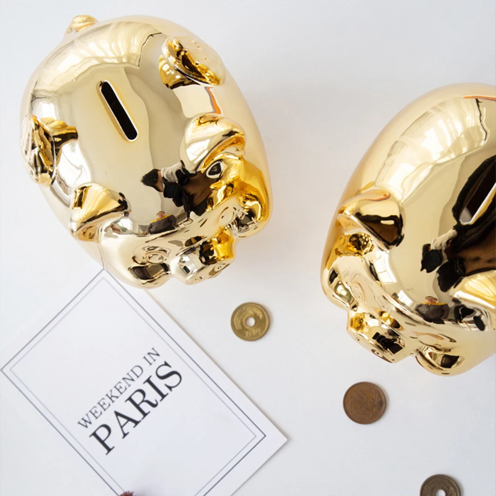 Smooth Ceramic : Made of smooth and delicate ceramic, this gold piggy bank is round and luster, adding a touch of elegance to any room