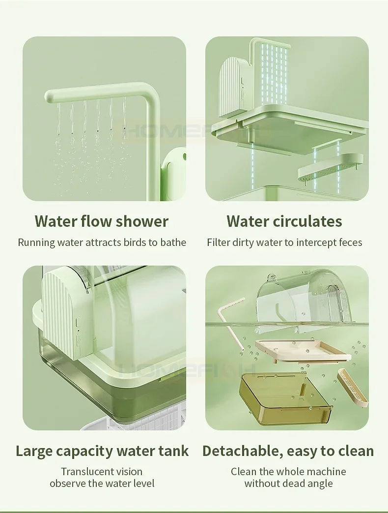 🐦💦 Clear Hanging Bird Bath with Automatic Water Circulation | Space-Saving Bird Shower 🚿 | Easy-Clean Bird Cage Accessory