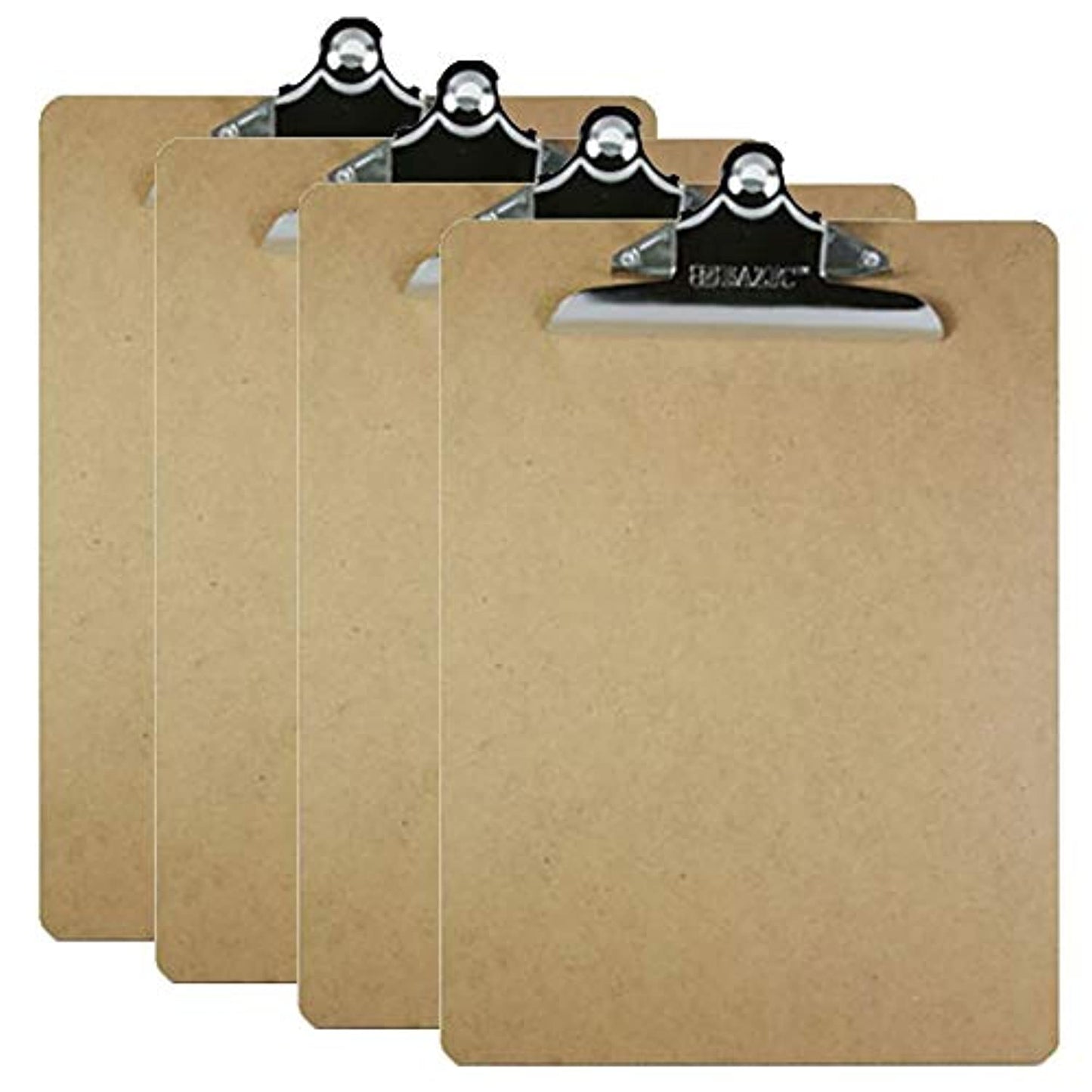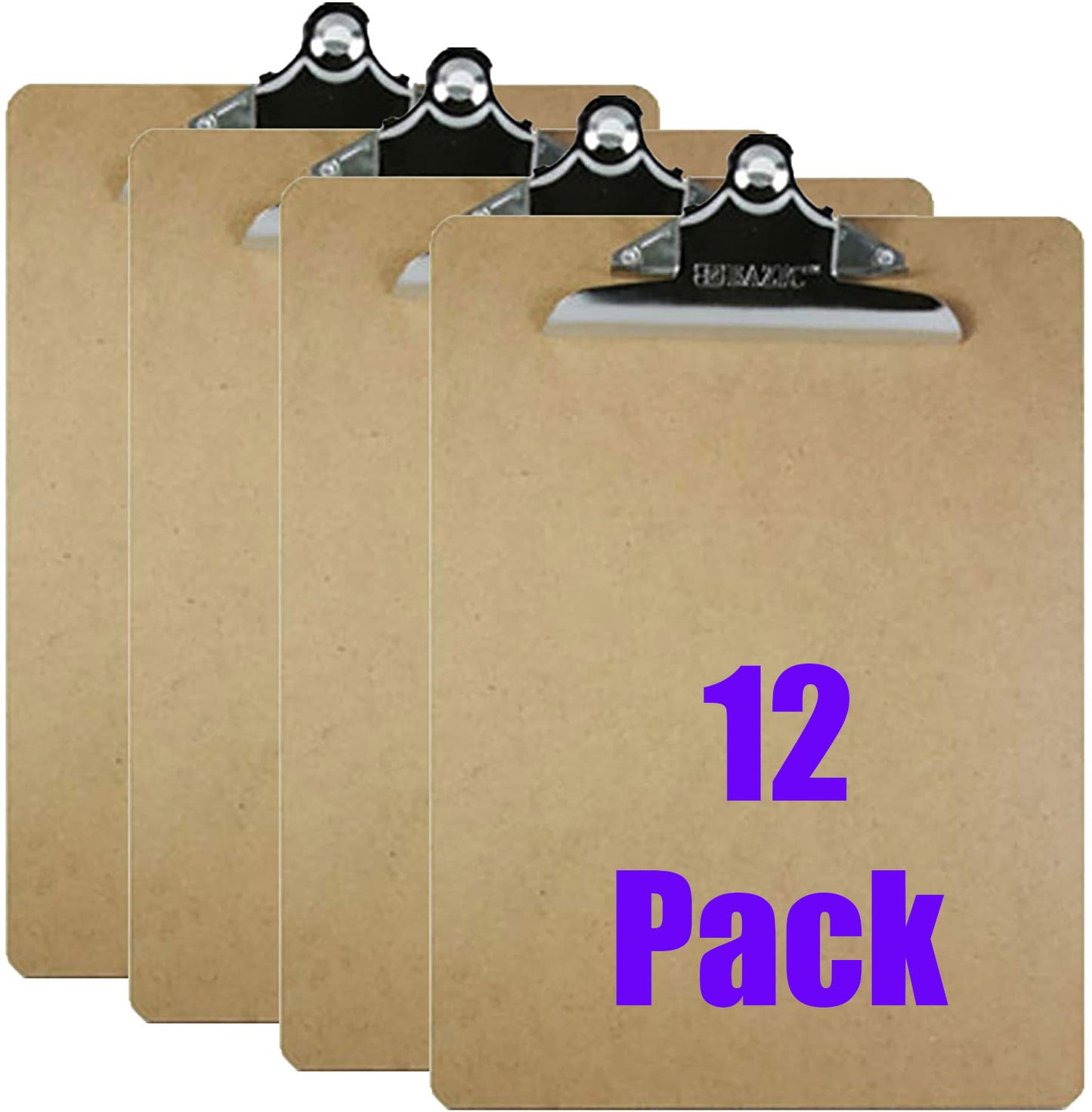 Clipboards Wood Hardboard Standard Size w/Sturdy Spring Clip, 12.5" x 9"