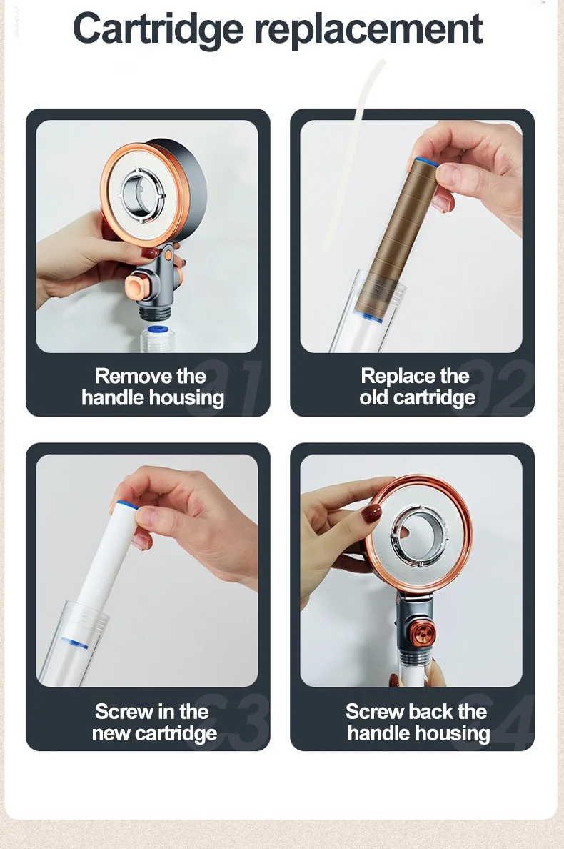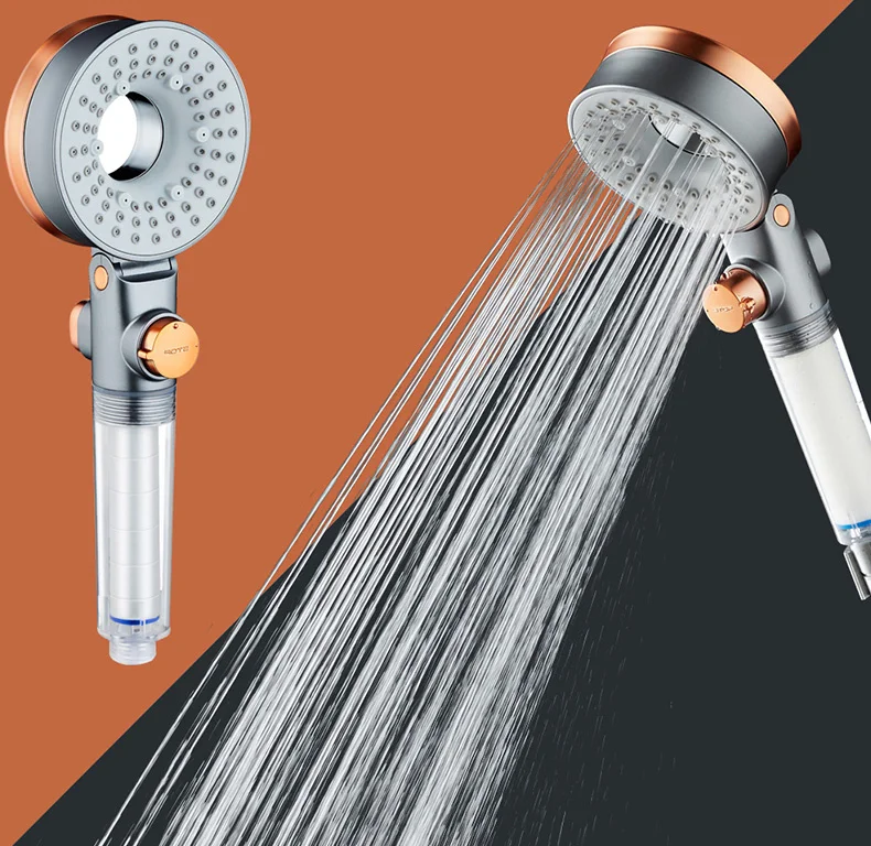 Filtered Water Shower Head with Three-gear Pressurized Water Stop and De-chlorination Skin Care Beauty
