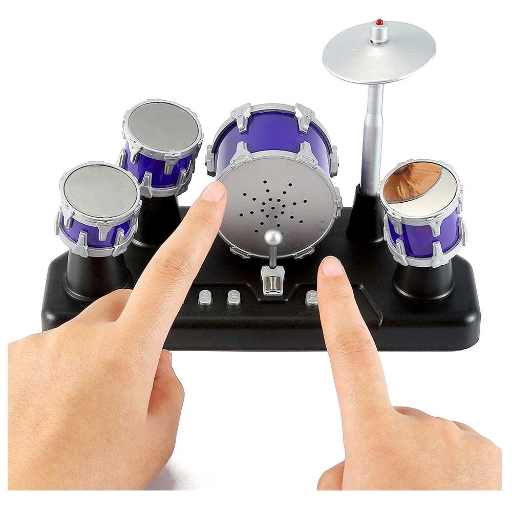 Tap your finger on the drums to play their sound Mini Foot Pedal that you can hit for the base drum Hit the cymbal to play its sound Mix and match the sounds to create your own beat Record your masterpiece and share it with your friends Requires 3 AAA Batteries (Not included) |