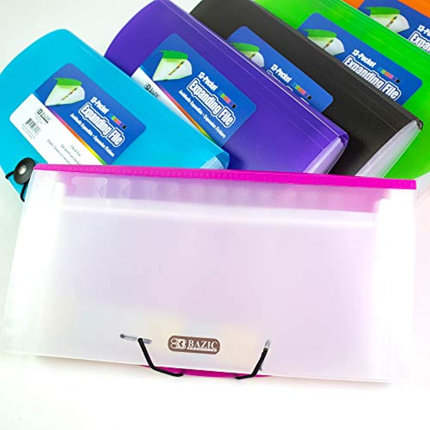 13 Pockets Dividers, Check Size Poly Expanding File, Elastic Band Closure | 4 Assorted Colors