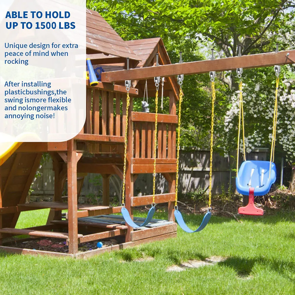 Crafted from durable stainless steel, these heavy-duty swing hooks feature smooth bearings for effortless movement. Ideal for securely hanging swings with reliable strength and long-lasting performance.