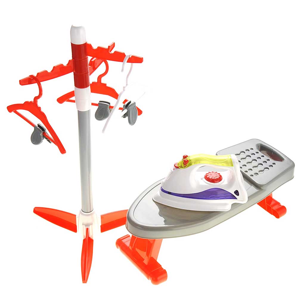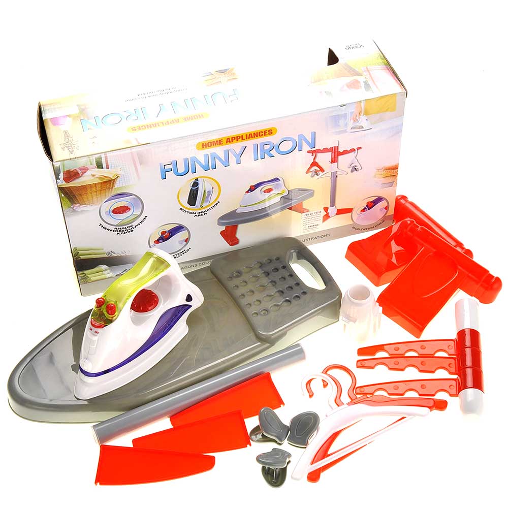 | Features | Ironing playset toy includes Iron, Board, Clothes Dryer, and Hangers. Essentially everything you need to get those annoying wrinkle off the clothes. Iron and accessories are made out of sturdy plastic material and they even look like the real thing Iron is roughly 7" and iron board measures 14" Built-in light when it's turned on and it can even makes a realistic steaming sounds Playset is ideal for role playing and kids can pretend to help their parents with their chores |