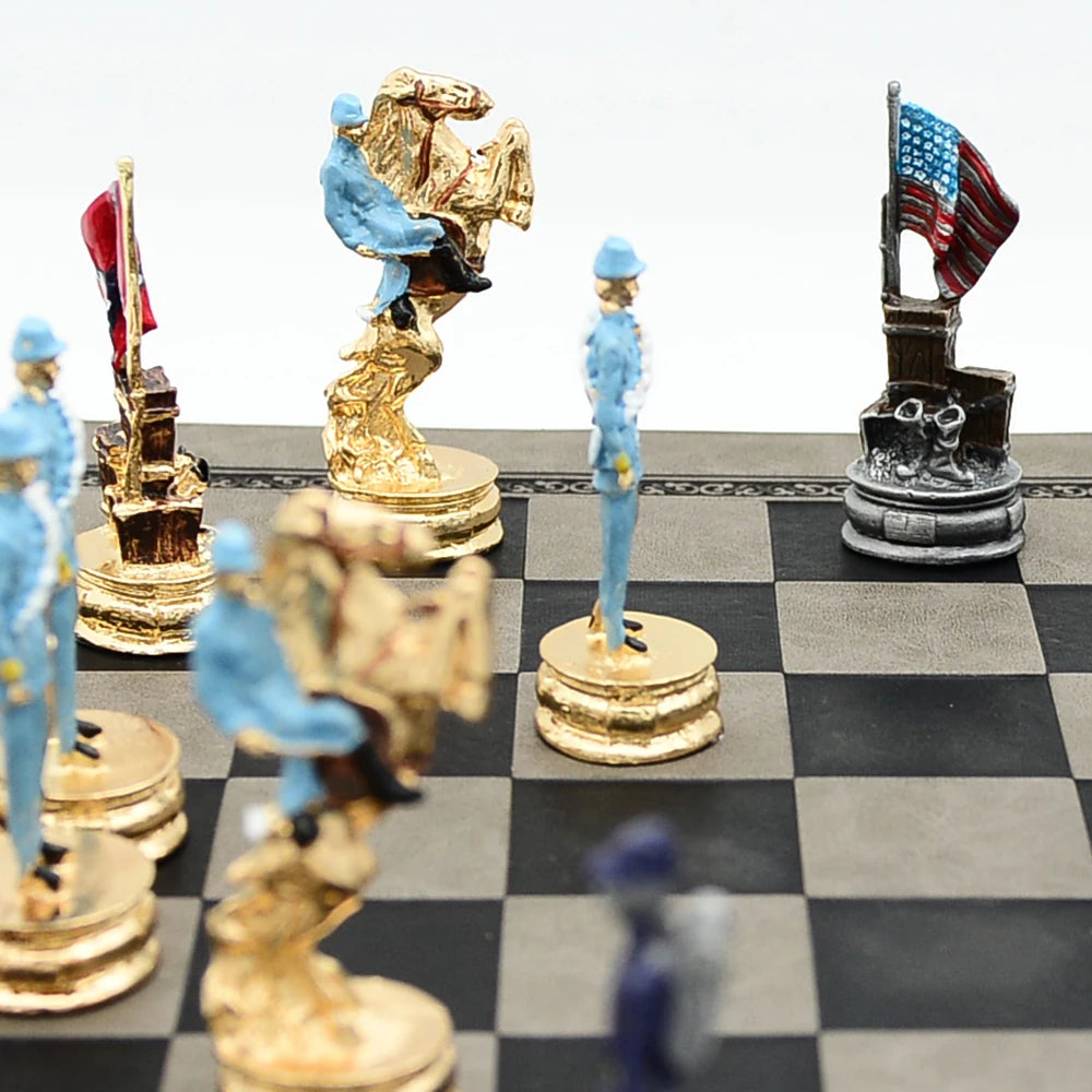 war themed chess set, metal resin chess pieces, hand painted chess set, luxury chess board, leather chessboard set, collector chess pieces, knight themed chess set, strategy board game gift, premium chess set, desktop chess décor