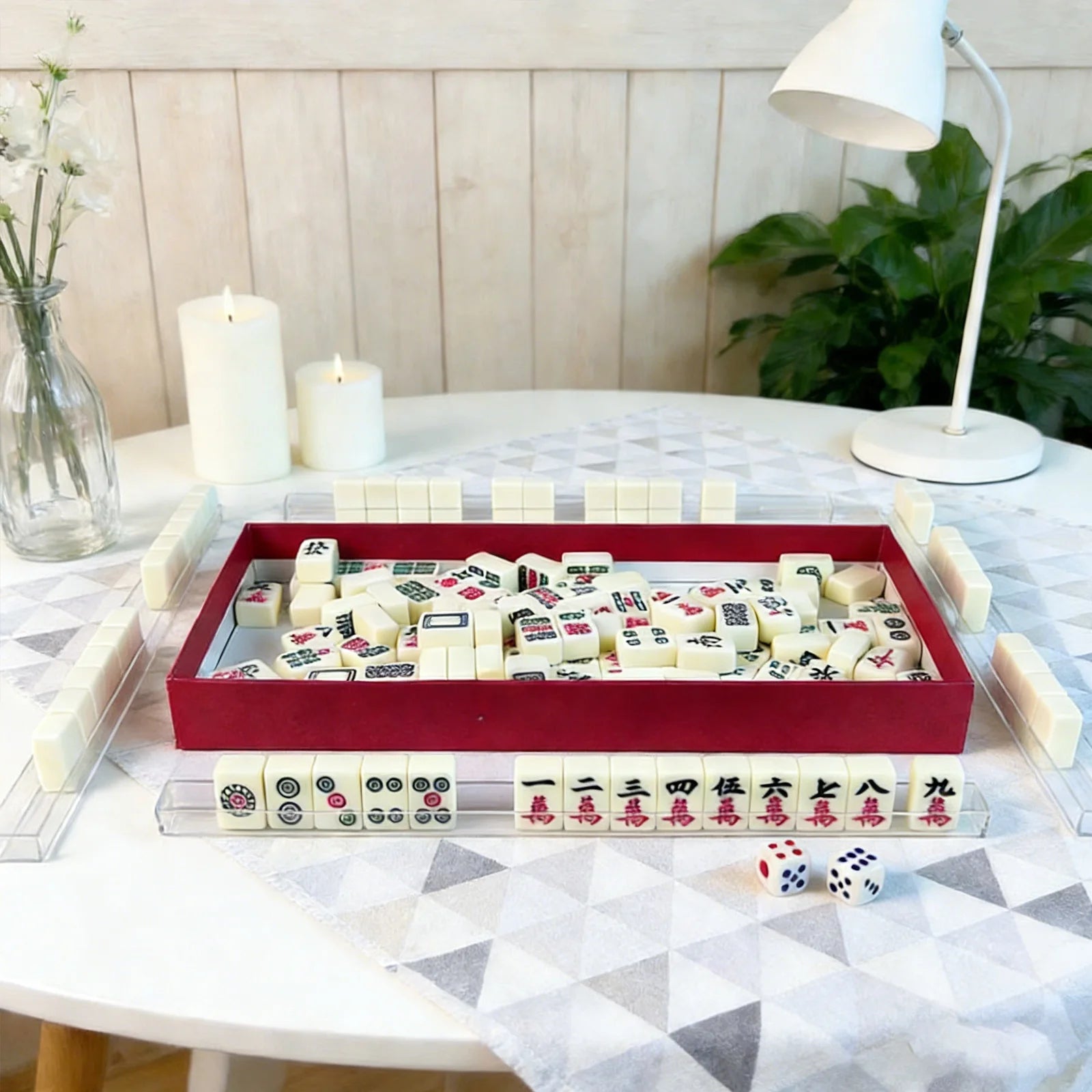 144 classic Mahjong tiles made from high‑quality, scratch‑resistant acrylic
