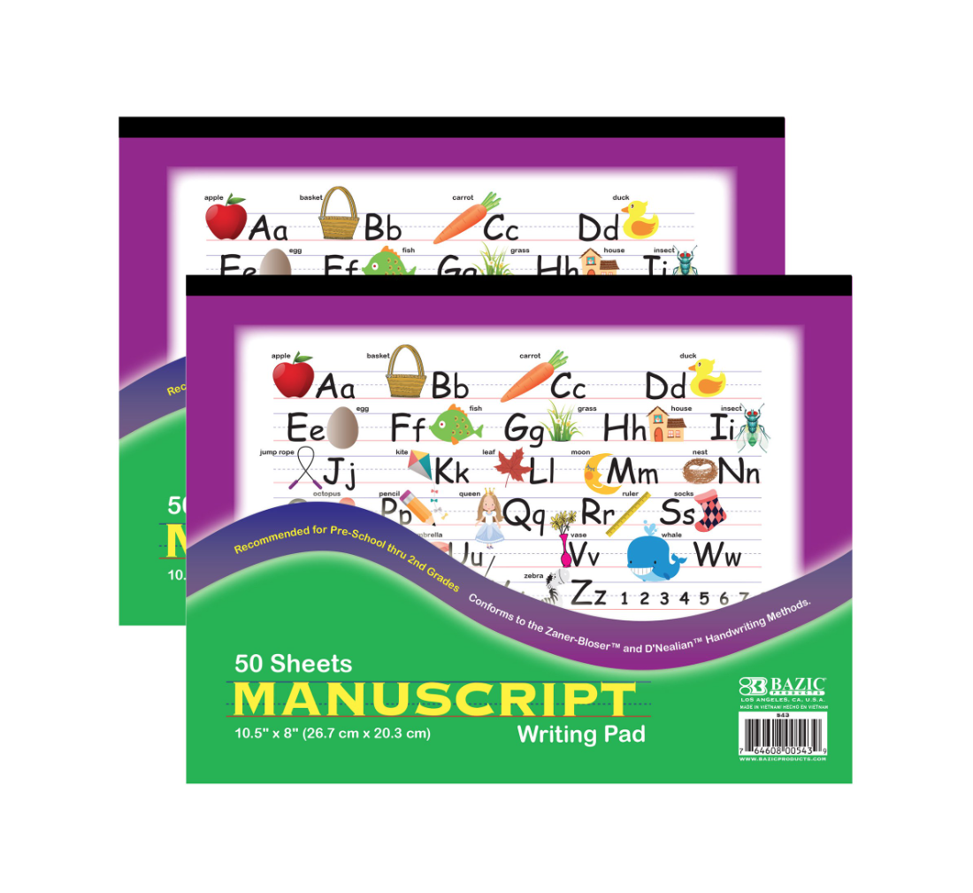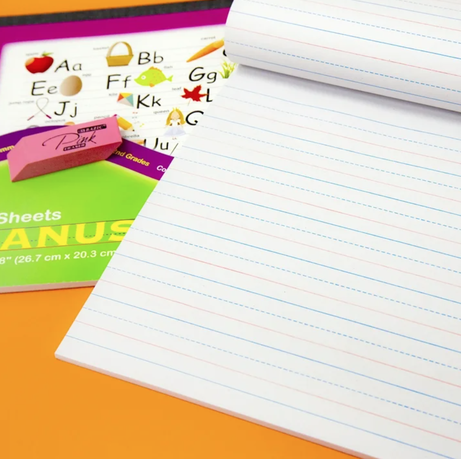 ✅ HANDWRITING BOOKS. A pack of 'Manuscript Writing Pad' with 50 sheets, 10.5" x 8" size, designed for handwriting practice with a focus on manuscript and cursive writing. This primary rule (9 lines per page) teaches children how to properly position block letter printing, manuscript, and cursive writing. 1/2 inch ruling, 1/4 inch midline, 1/4 inch skip space.