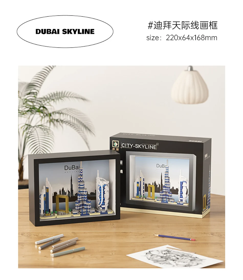 ππ§± Micro World Famous Architecture Building Blocks β New York, Paris, London & Dubai Skyline Photo Frame DIY Wall Decoration