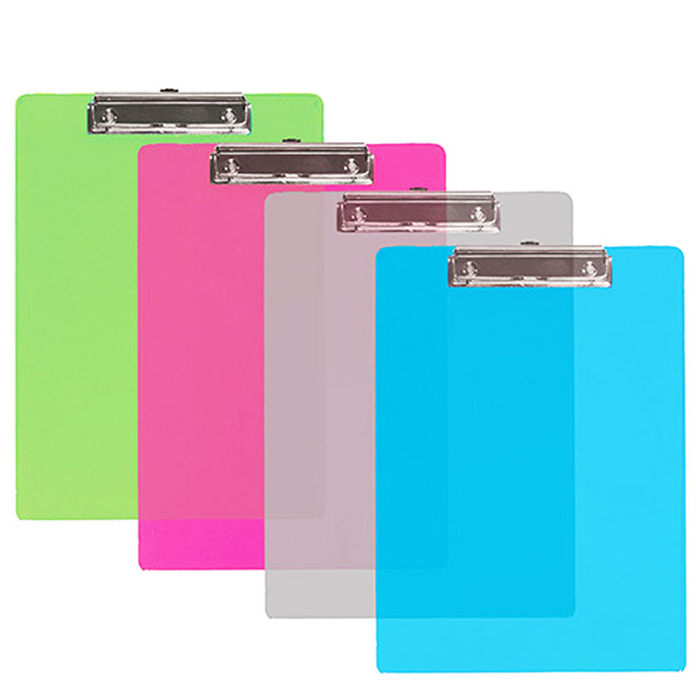 This translucent, bright-colored plastic memo-sized clipboard features a low-profile clip for easy storage. It is ideal for shops, offices, or schools with a smooth writing surface