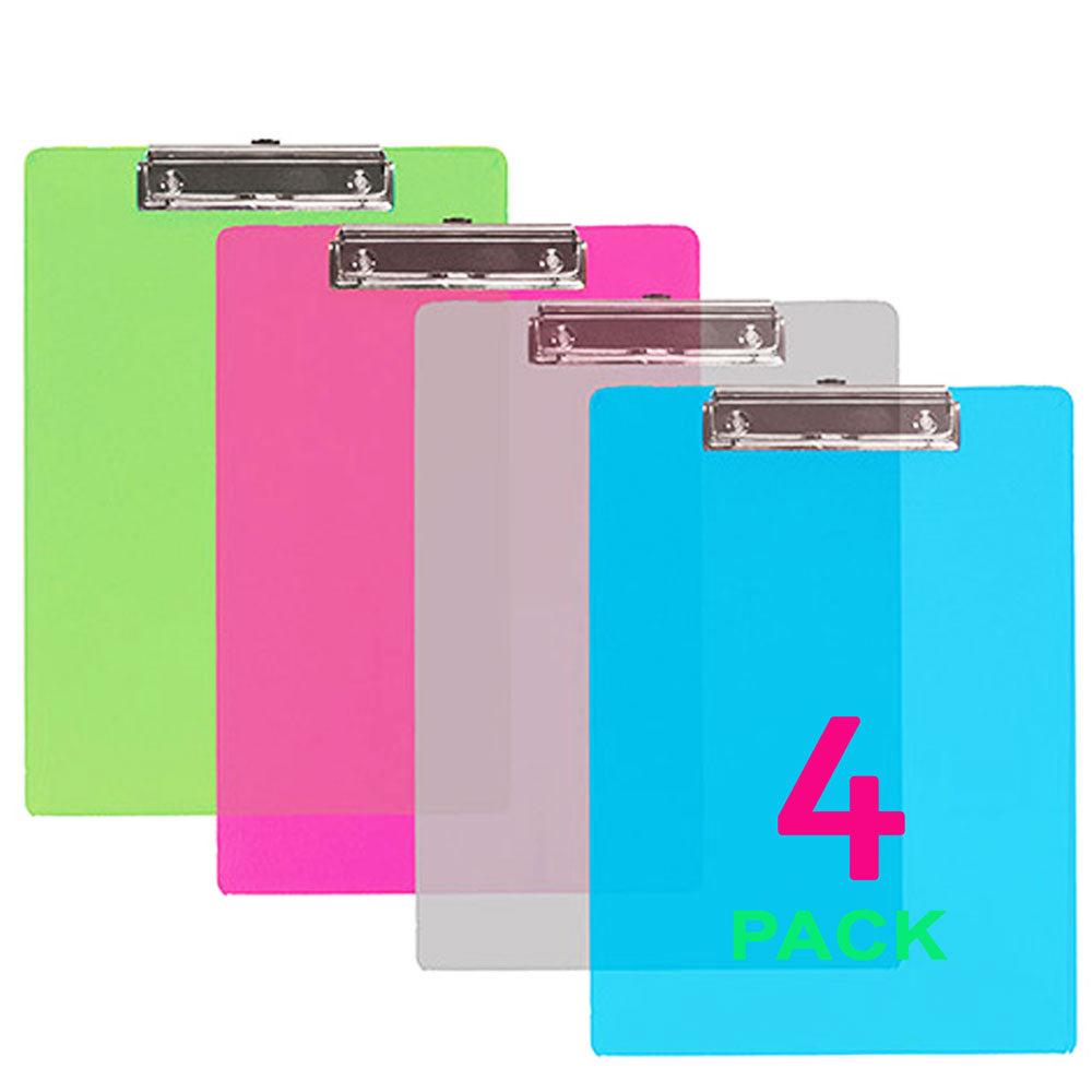 Memo Size Plastic Clipboard with Sturdy Memo Clipboard Low Profile Spring Clip | 4-ct Vivid Colors