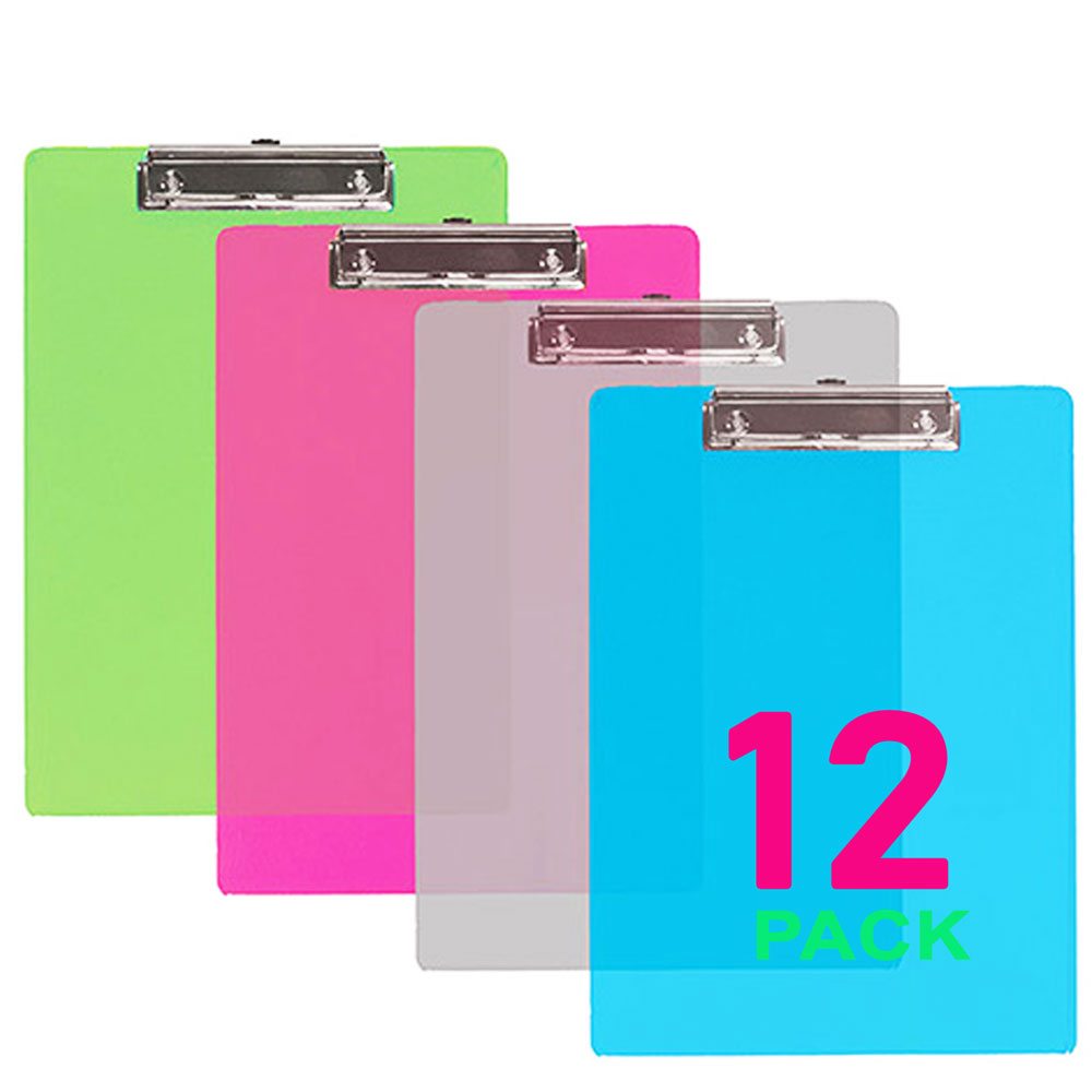 Plastic Clipboard Memo Size 9" x 6" Low Profile Clip Board, 24-Pack