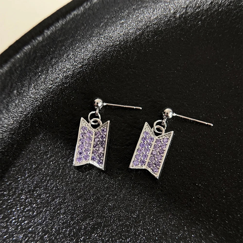 💜✨ Fashion Purple Crystal Earrings 🎧 | Zircon Alloy Pendant Earrings for Women & Girls 💎 | POP Music Lover Gift 🎤
