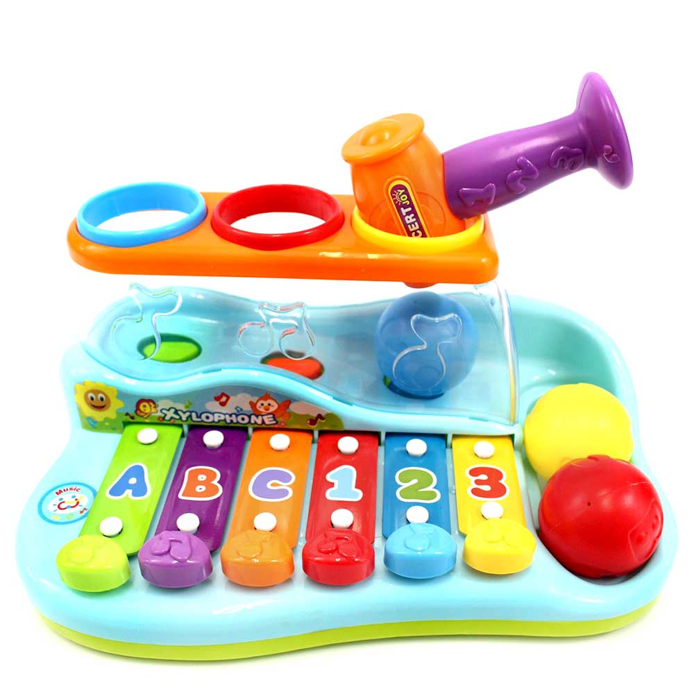 | Features | Fun, Colorful Xylophone Piano Pounding Bench Tap or Slide Across 6 Keys |