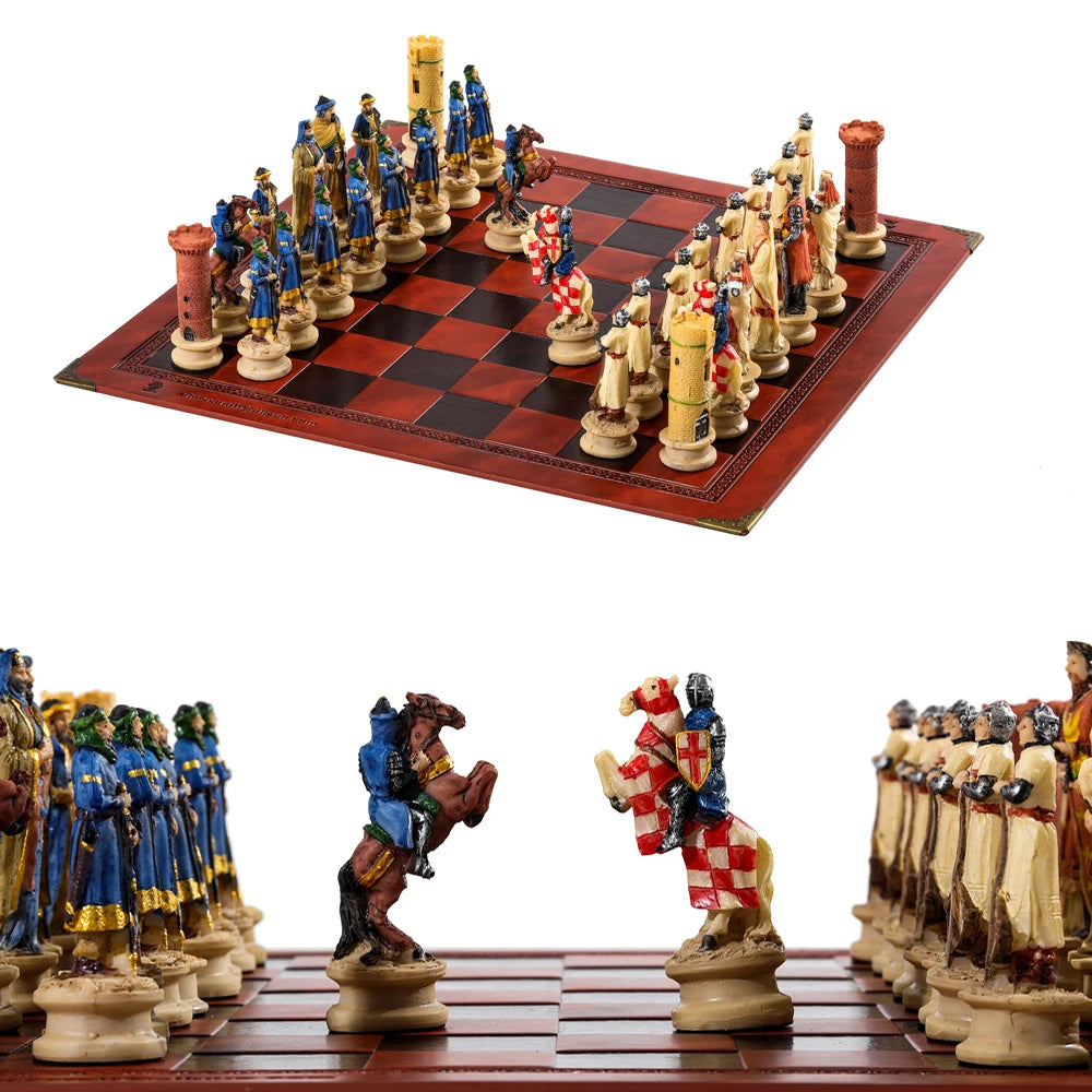 Role Theme Historical Chess Set ♟️ | Hand‑Painted Resin Pieces & Embossed Leather Board 🪄 | 32‑Piece Collector’s Gift Set 🎁 | Premium Strategy Game for Home & Display