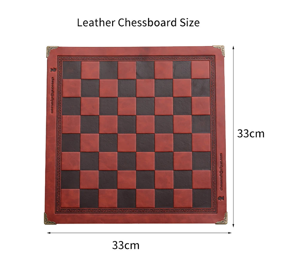 Embossed Leather Chess Board: A 13x13 inches (33x33cm) luxurious board that elevates your décor and enhances every game.