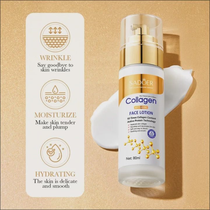 SADOER Collagen Facial Serum Face Lotion hydrates and controls oil while replenishing moisture. This refreshing facial essence helps maintain balanced, smooth, and revitalized skin.