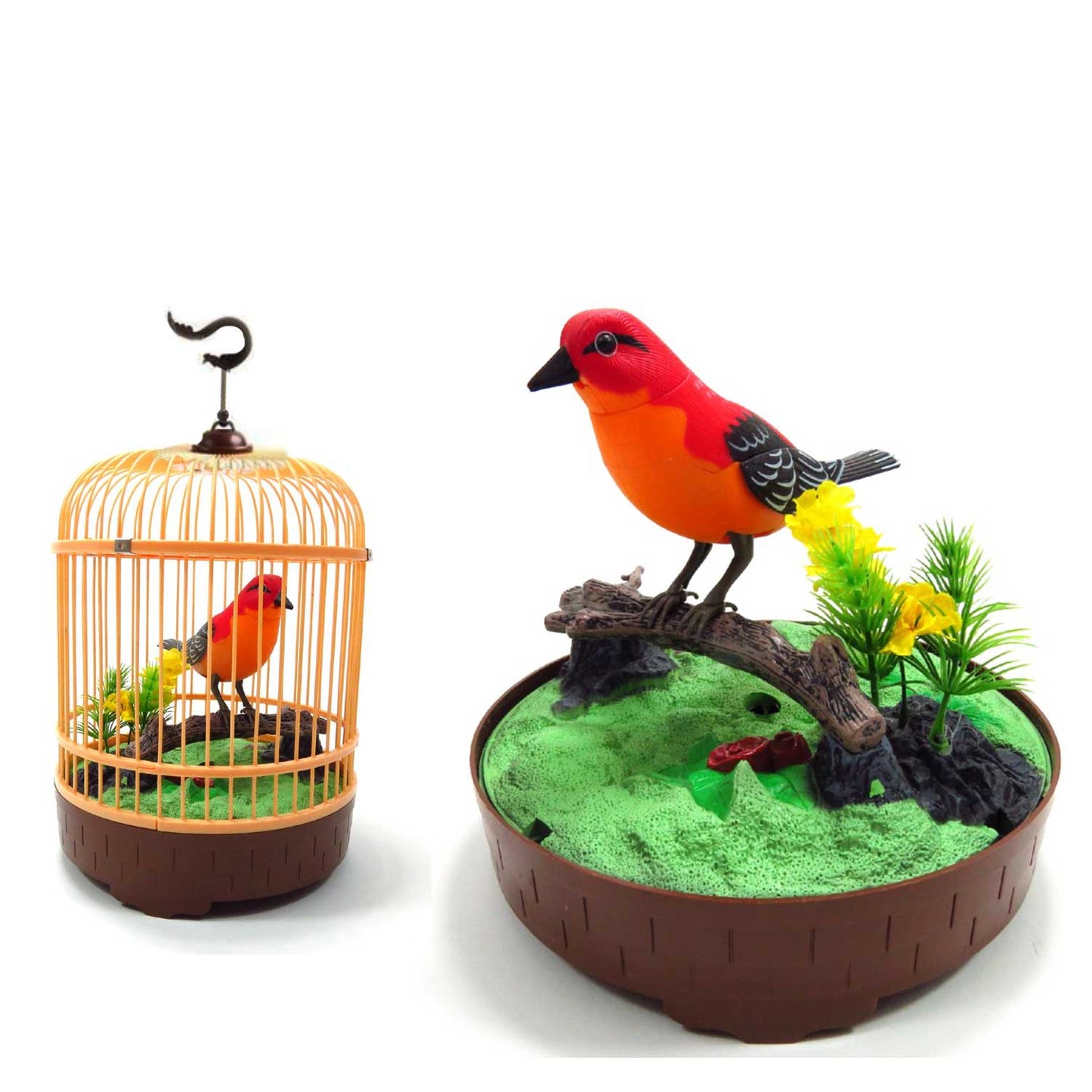 Device Toys Singing & Chirping Bird In Cage with Realistic Sounds & Movements