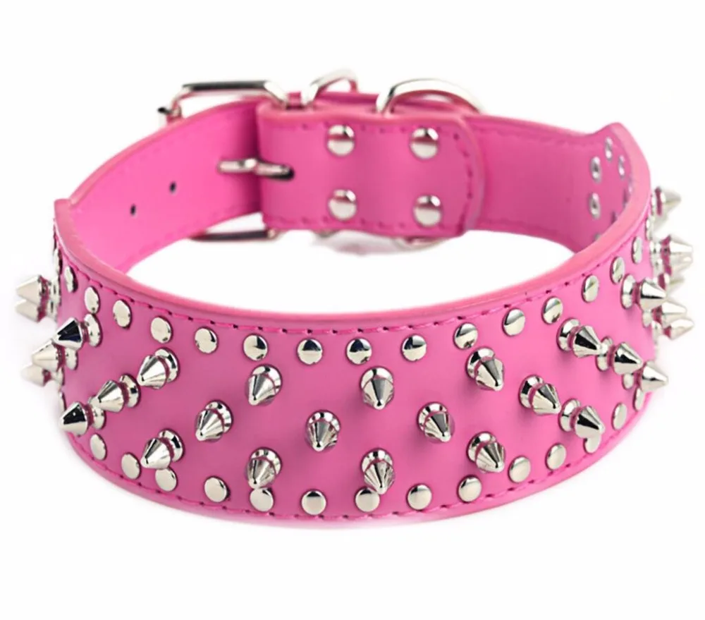 Spiked large dog collar For Medium Large Breeds Pitbull Mastiff Boxer PU leather dog collar high quality M-3XL