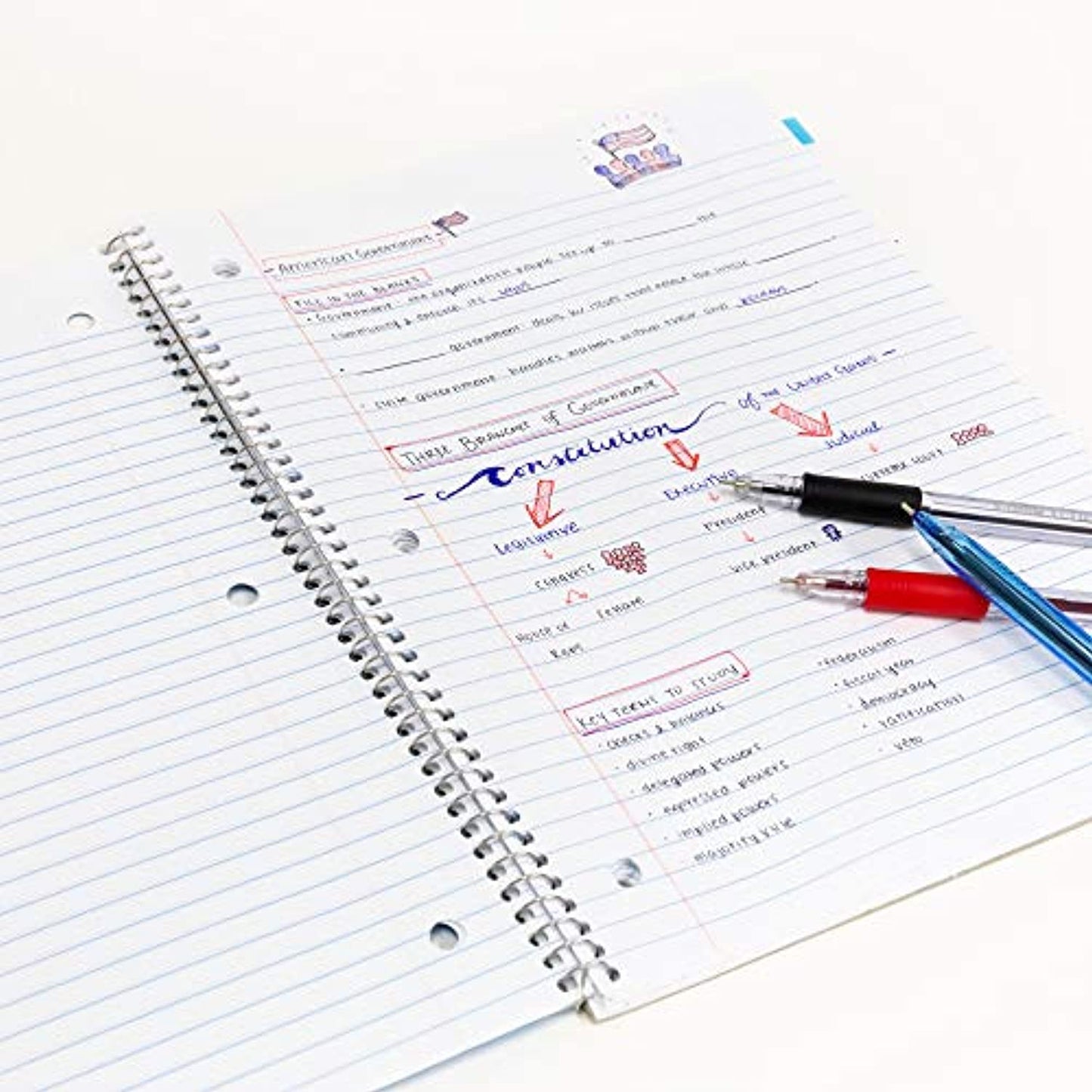 Spiral Notebook, 3-Subject Wide Ruled 120 Sheets
