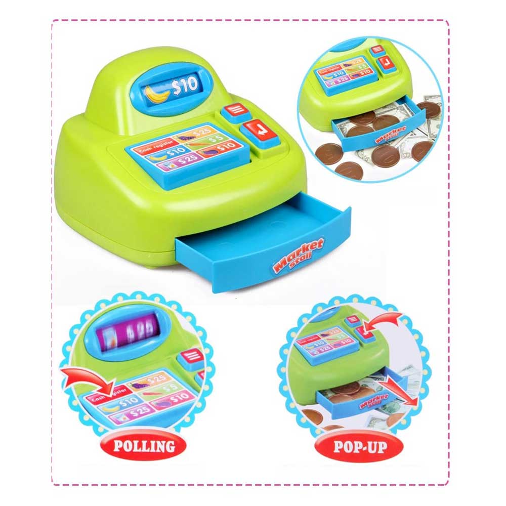 | Features | Cash Register Working Scanner Shopping Cart Play Food Play Money |