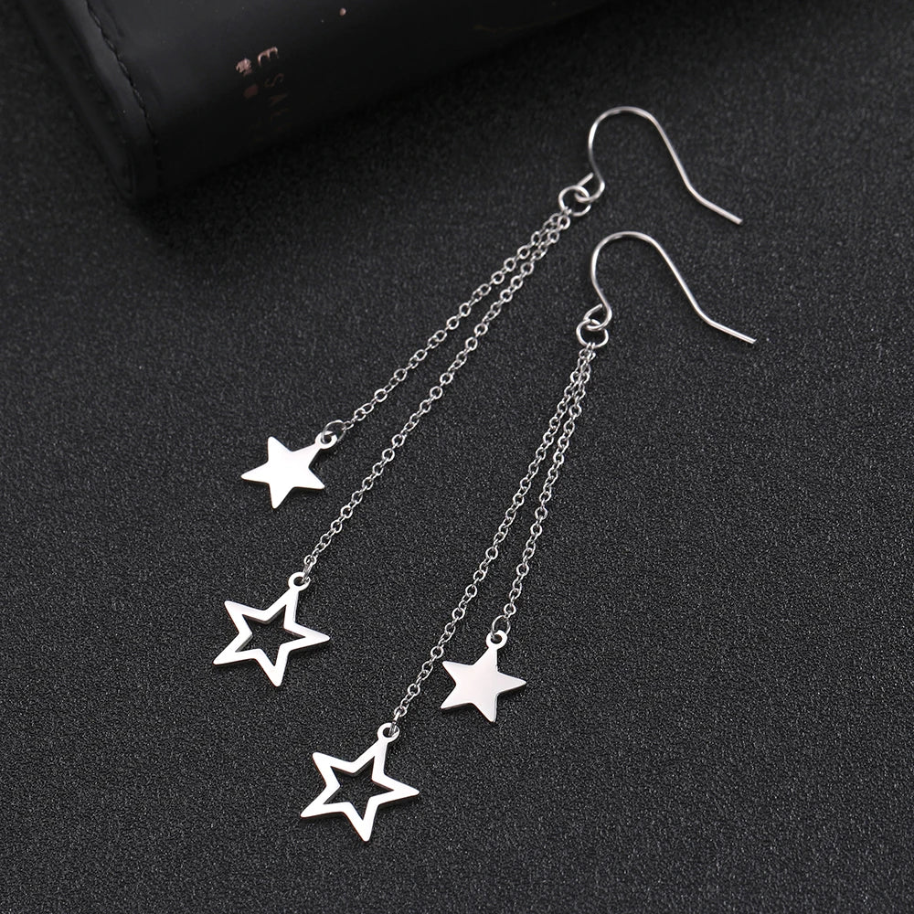 star moon earrings, tassel dangle earrings, korean trendy earrings, stainless steel earrings women, celestial earrings jewelry, valentine day gift earrings, moon star pendant earrings, fashion earrings for girls