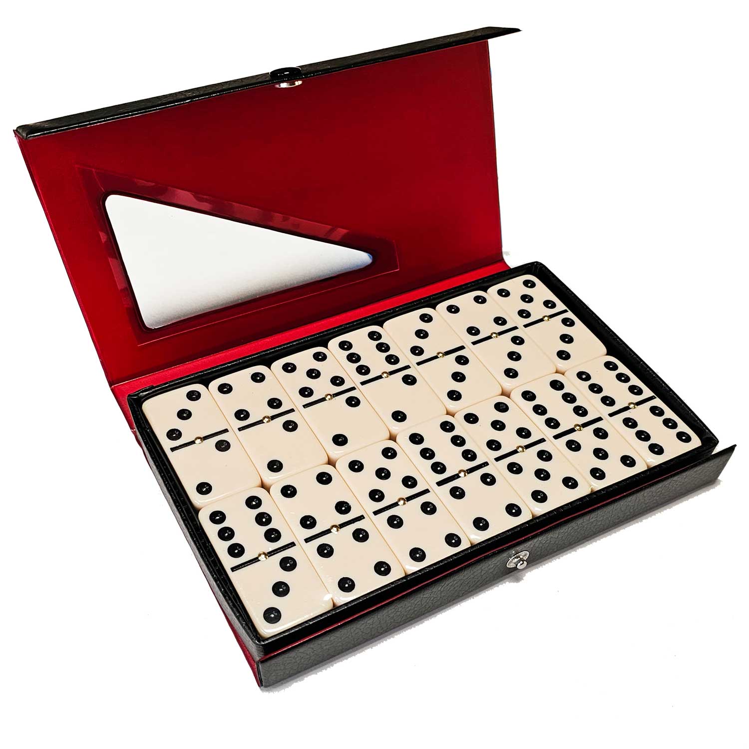 🎲 Double 6 Jumbo Dominoes Spinner Set with Vinyl Case | IVORY