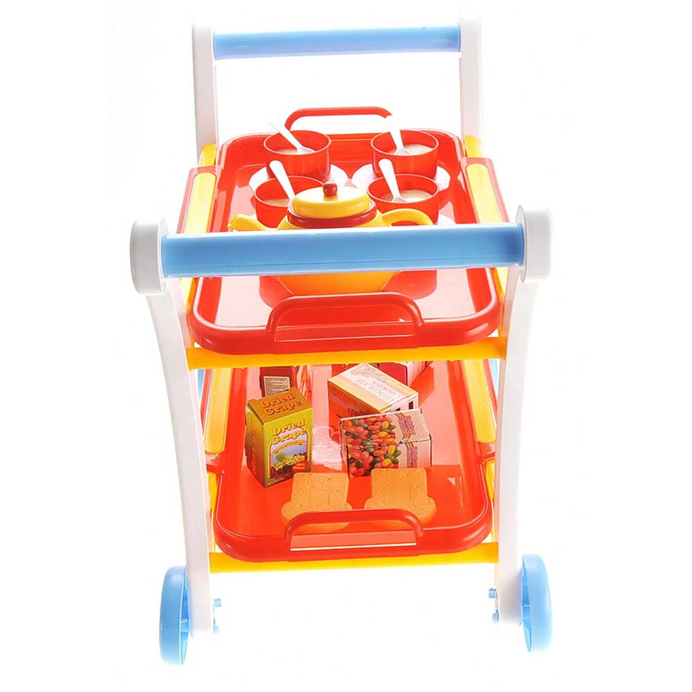 It's tea time, and your little hostess will prepare well for the party with this plastic 23-piece tea set and trolley. Set includes tea cart/trolley, teapot, cups, toast, utensils, etc. Rolling Cart with Removable Tray to Display All the Goodies. It's easy to assemble and requires no tools. Measures 17" x 13" x 20". Adult supervision is recommended.
