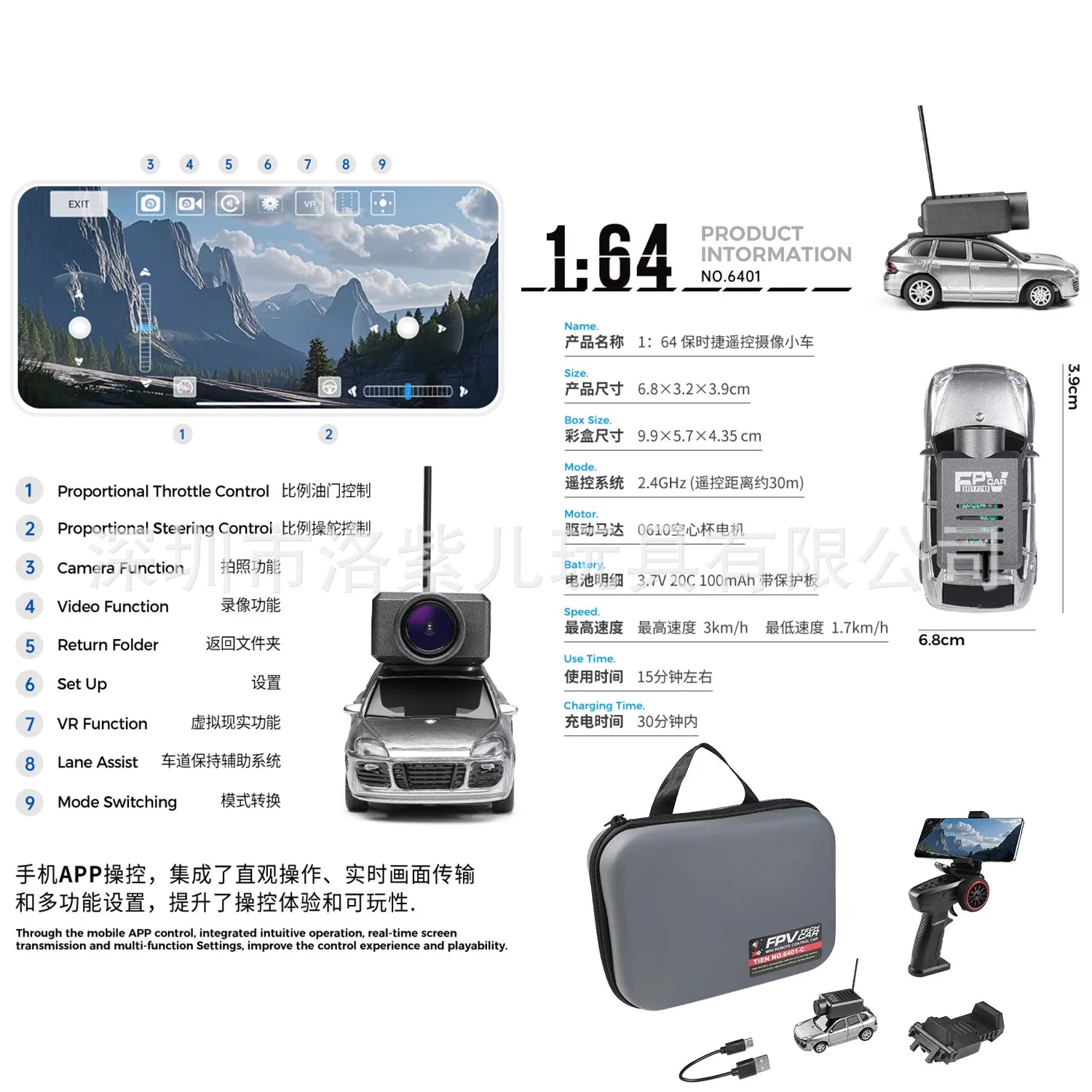 Car Model 1:64 6401 FPV RC Camera Mini Vehicle Full Scale Photo Self-stabilizing Rear Drive with 720P Remote Control Car